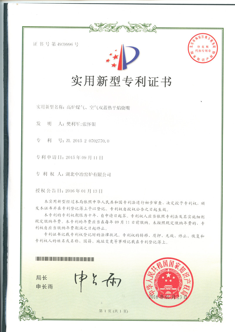 高爐煤氣、空氣雙蓄熱平焰燒嘴